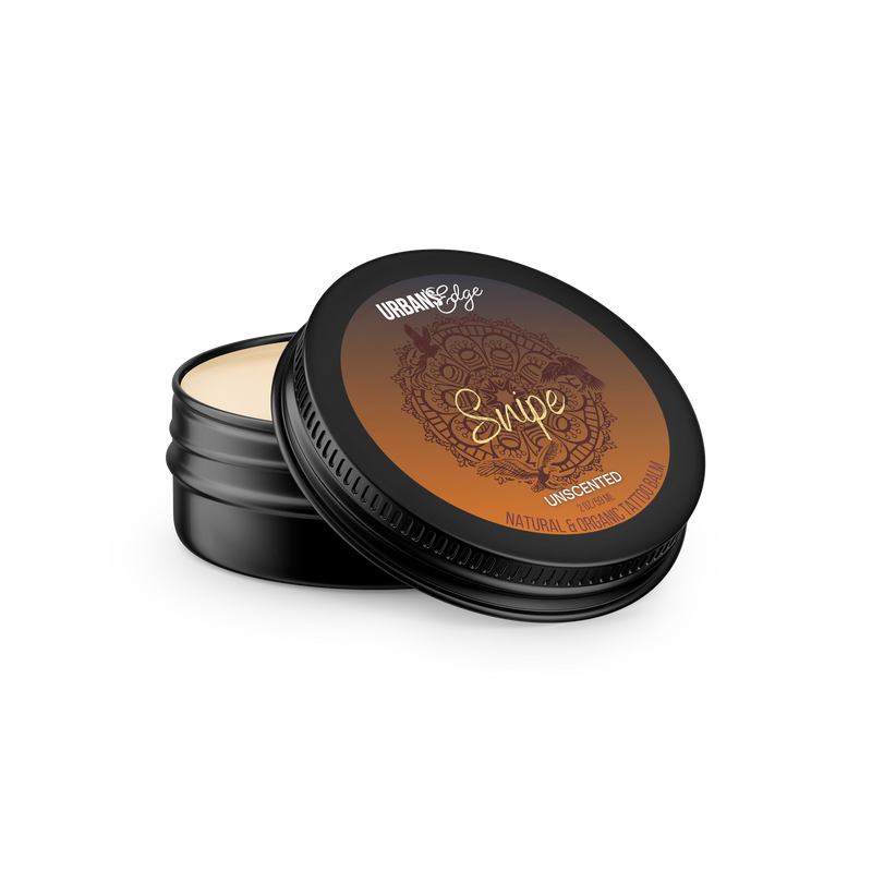 Urban’s Edge tattoo butter balm is the premium solution for your tattoo care needs! In the current market, most other tattoo balms are made with cheap coconut oil which is highly comedogenic, clogging pores and causing unwanted breakouts rather than protecting you from them. We've taken a different path using premium nourishing Jojoba Butter and oils in our tattoo cream brightener for a fast-acting, lightweight and non-greasy, luxurious but effective skin conditioning experience every time. Jojoba Butter is your skin's closest oil available and it’s this similarity that allows Urban’s Edge Tattoo Balm to regulate your sebum production effectively. Your body won't be able to tell the difference! Whether it's your first tattoo or you're a 5-hour session veteran, Urban's Edge tattoo balm promotes rapid healing and helps maintain and enhance the vibrancy for your tattoo for the long haul